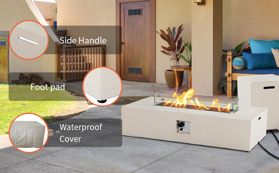 Amazon Com Sunbury Outdoor 56 Inch Propane Fire Pit Table 50 000 Btu Cream Patio Gas Fire Table W Glass Wind Guard Tank Table Cover Patio Lawn Garden